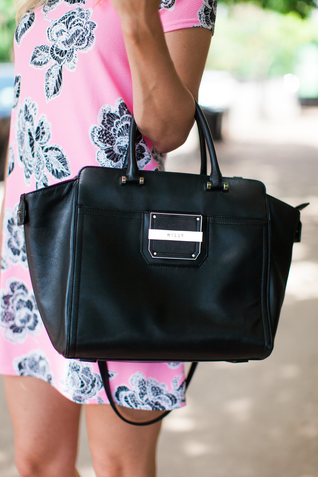 Dress: Boohoo | Shoes: Steve Madden | Purse: Milly (similar and 40% off!) | Sunglasses: Ray-Ban | Earrings: Kendra Scott | Ring: David Yurman | Nail Polish: Essie | Toe Polish: Essie | Lipgloss: Laura Mercier Babydoll