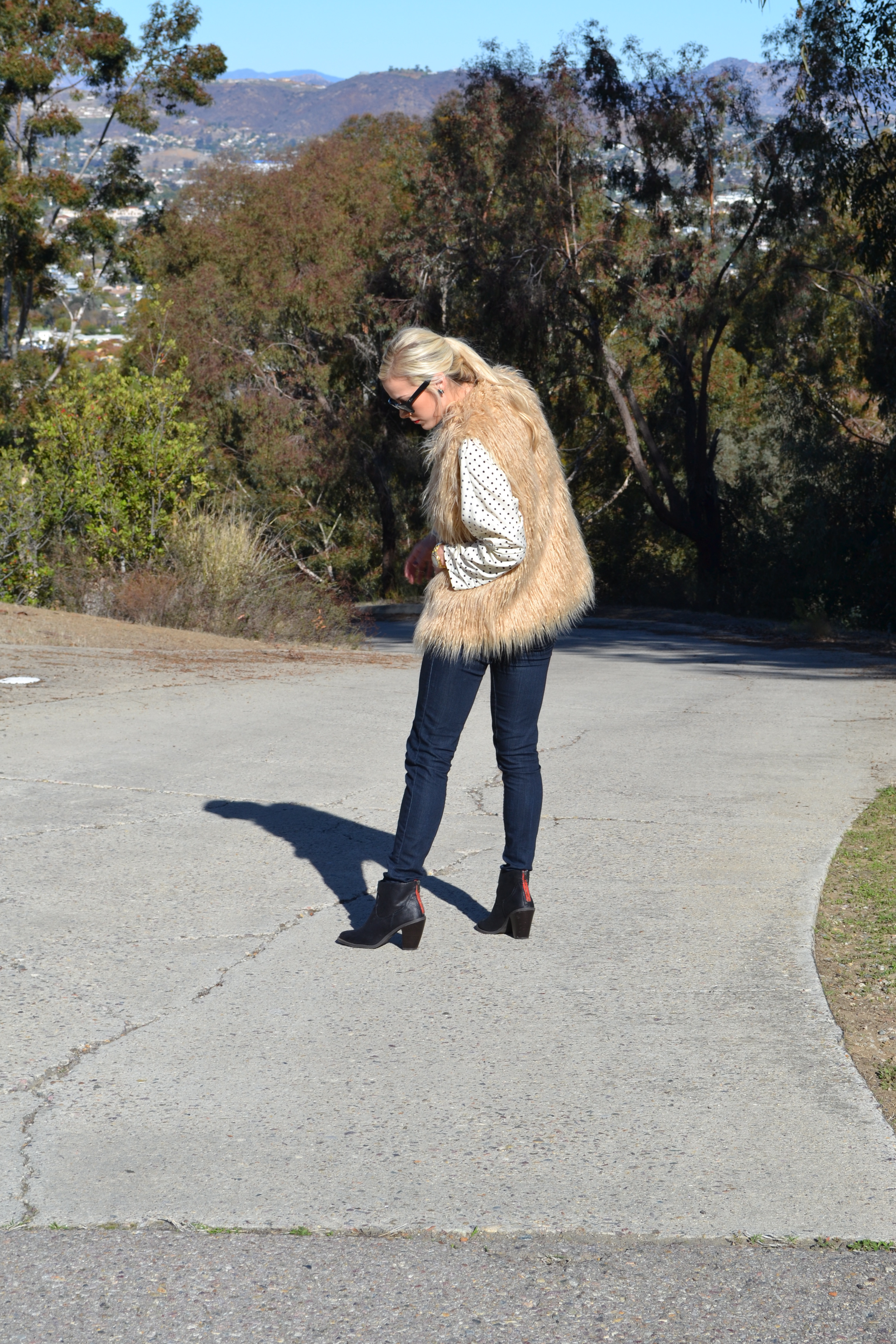 Jeans: Flying Monkey | Top: Lulu’s | Fur: TC Ellis’ | Booties: Target | Sunglasses: RayBan | Watch: Michael Kors | Necklace: Forever21 | Dainty Ring: Etsy (Similar) | Knuckle Ring: Forever21 | Earrings: Kendra Scott | Lip stain: Chanel Ruby Lite | Nail Polish: Essie Bahama Mamma