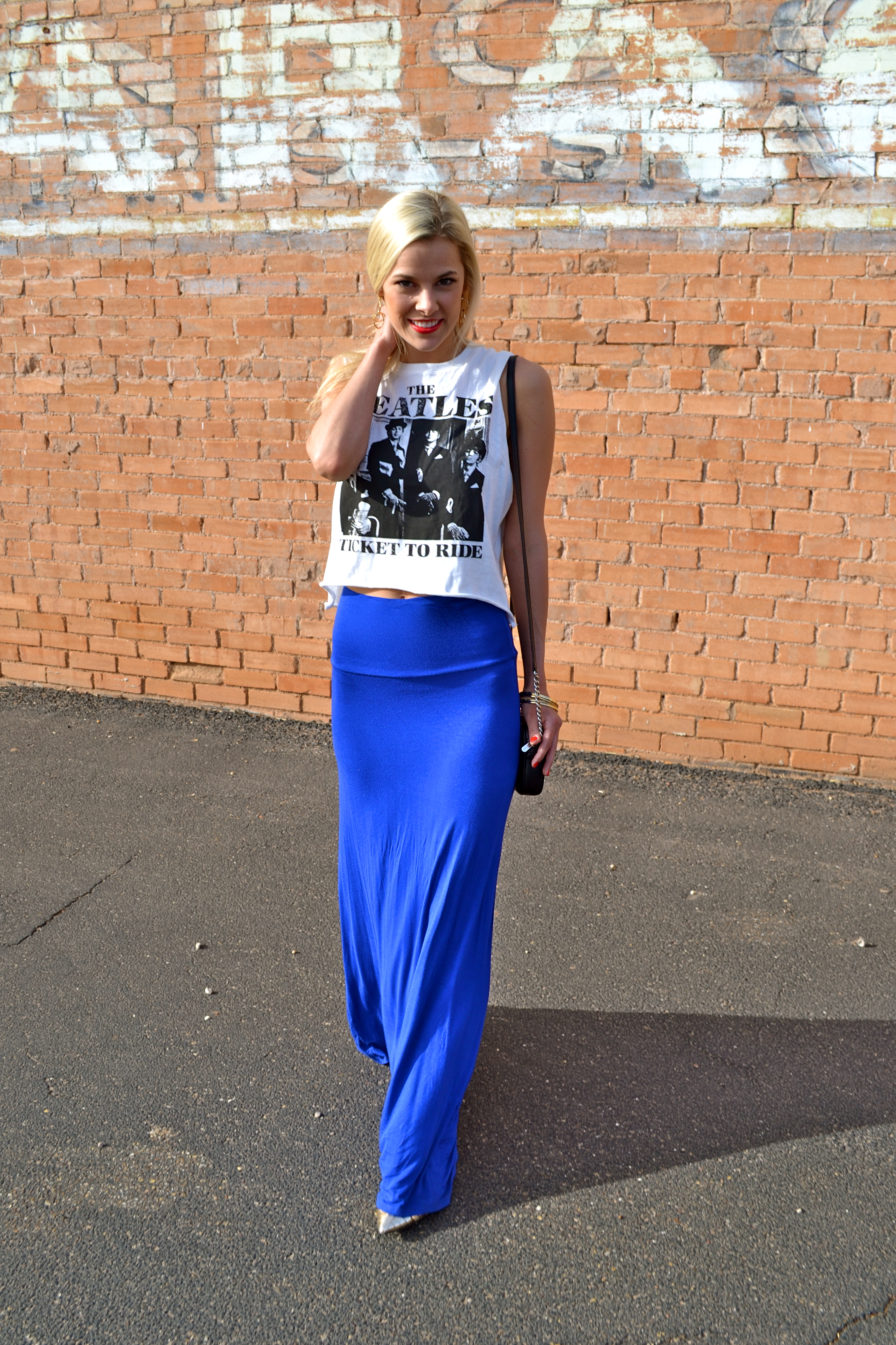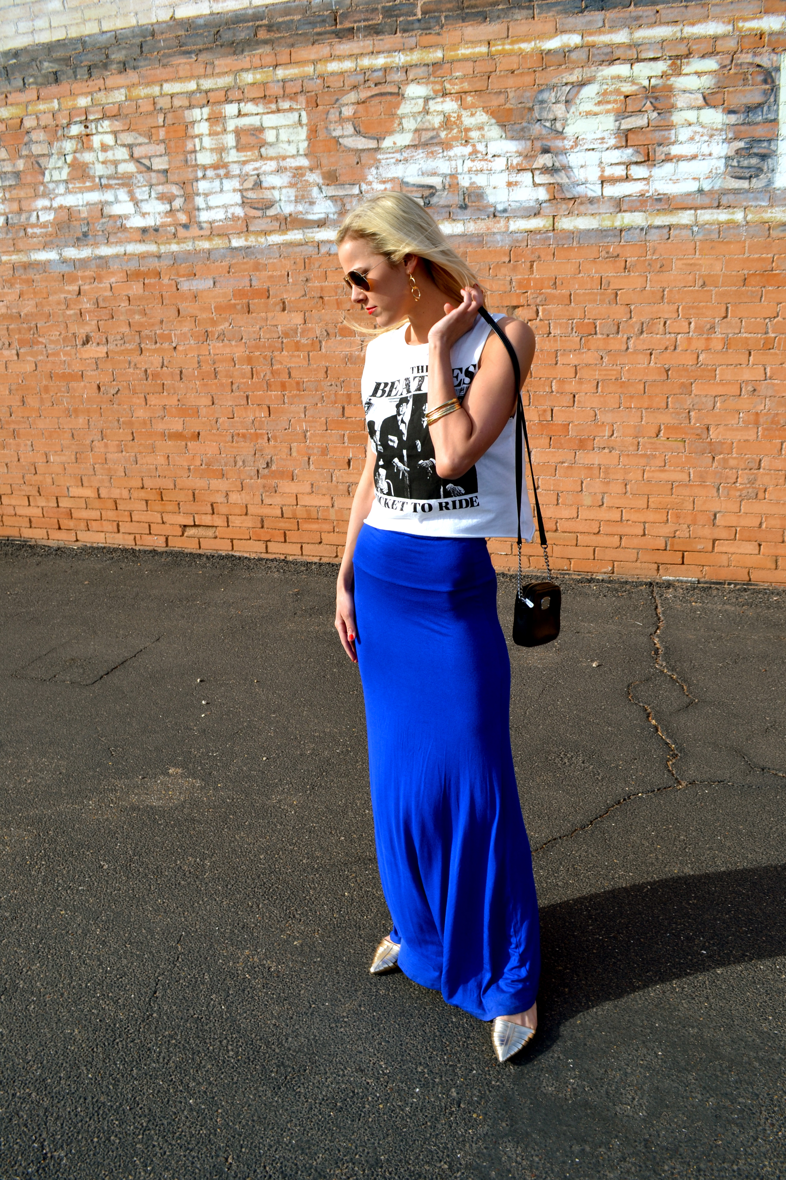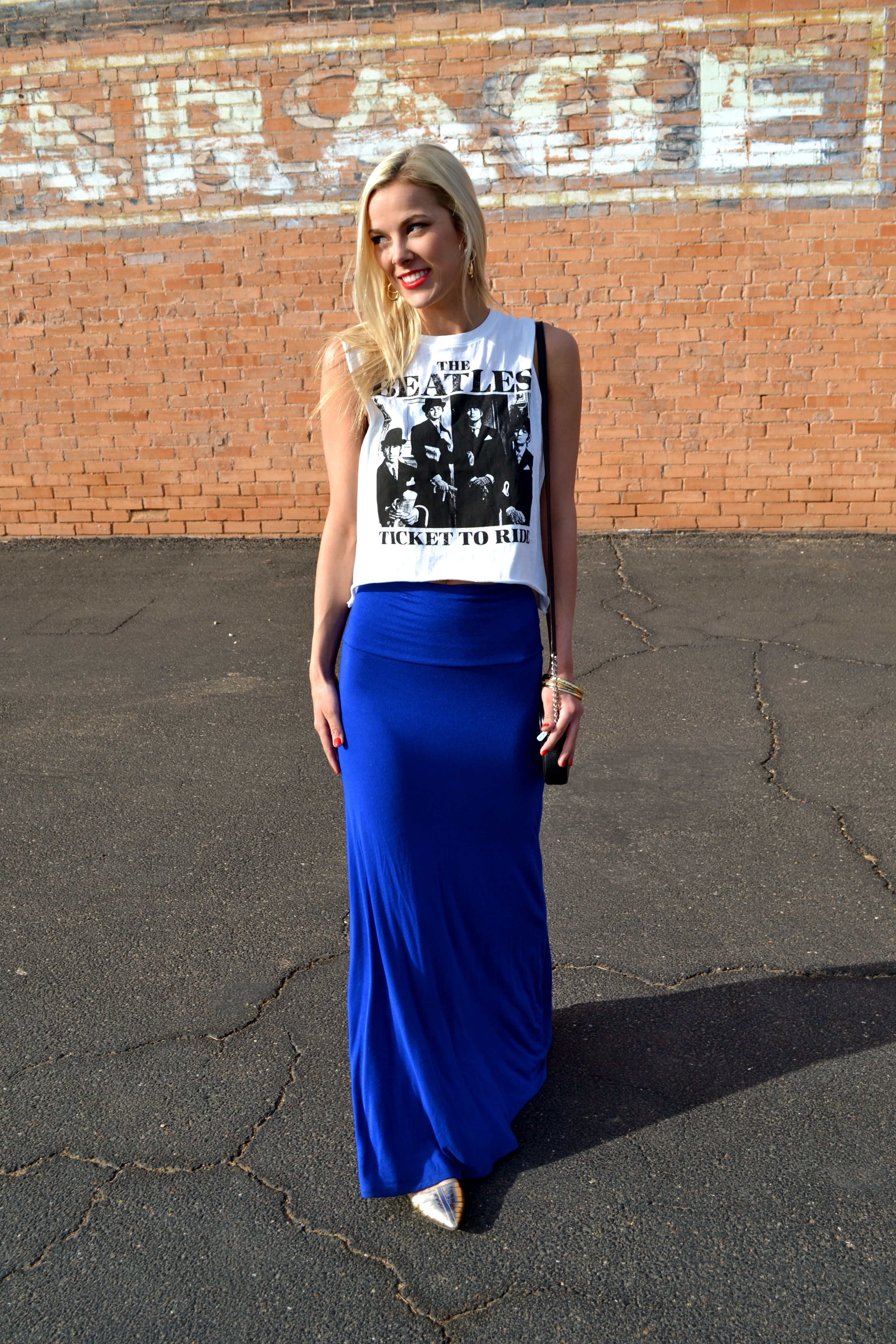 Top: Forever21 | Maxi Skirt: Frendsie | Shoes: 2020Ave | Sunglasses: Ray-ban | Crossbody: Michael Kors | Bangles: Forever21 | Earrings: Shenanigans Boutique | Ring: Etsy | Nail Polish: Essie Geranium | Lipstick: Lipstick Queen Saint Fire Red