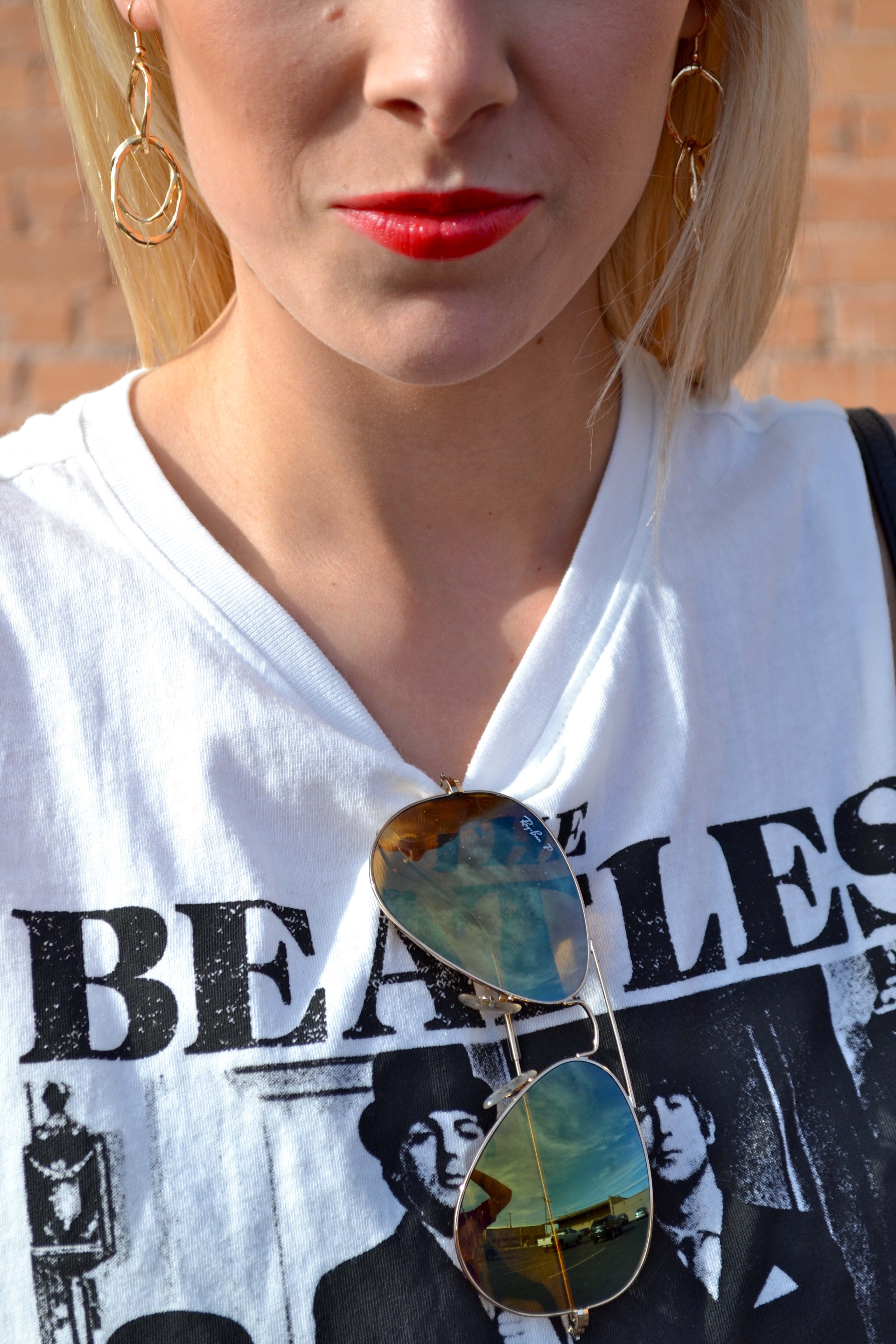 There is nothing I love more than throwing on something that is both comfy and cute. Do not get me wrong, I love all the glitz and glam that comes with being a woman, but sometimes you just have to take off the high heels! I love this outfit because it is fun but still comfortable enough to stay in all day (I am the queen of outfit changes!), and who does not love the anything that represents The Beatles and peace signs?