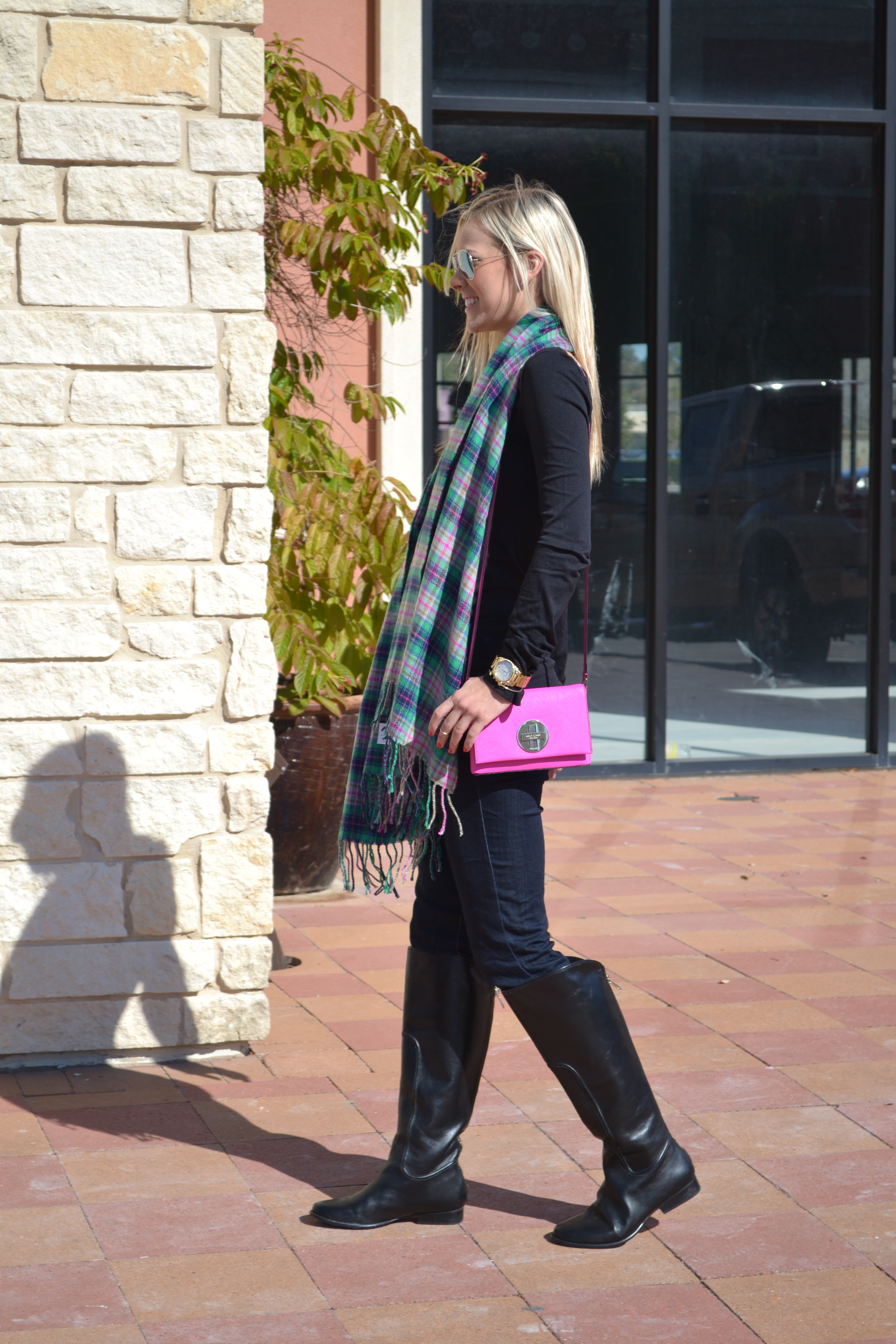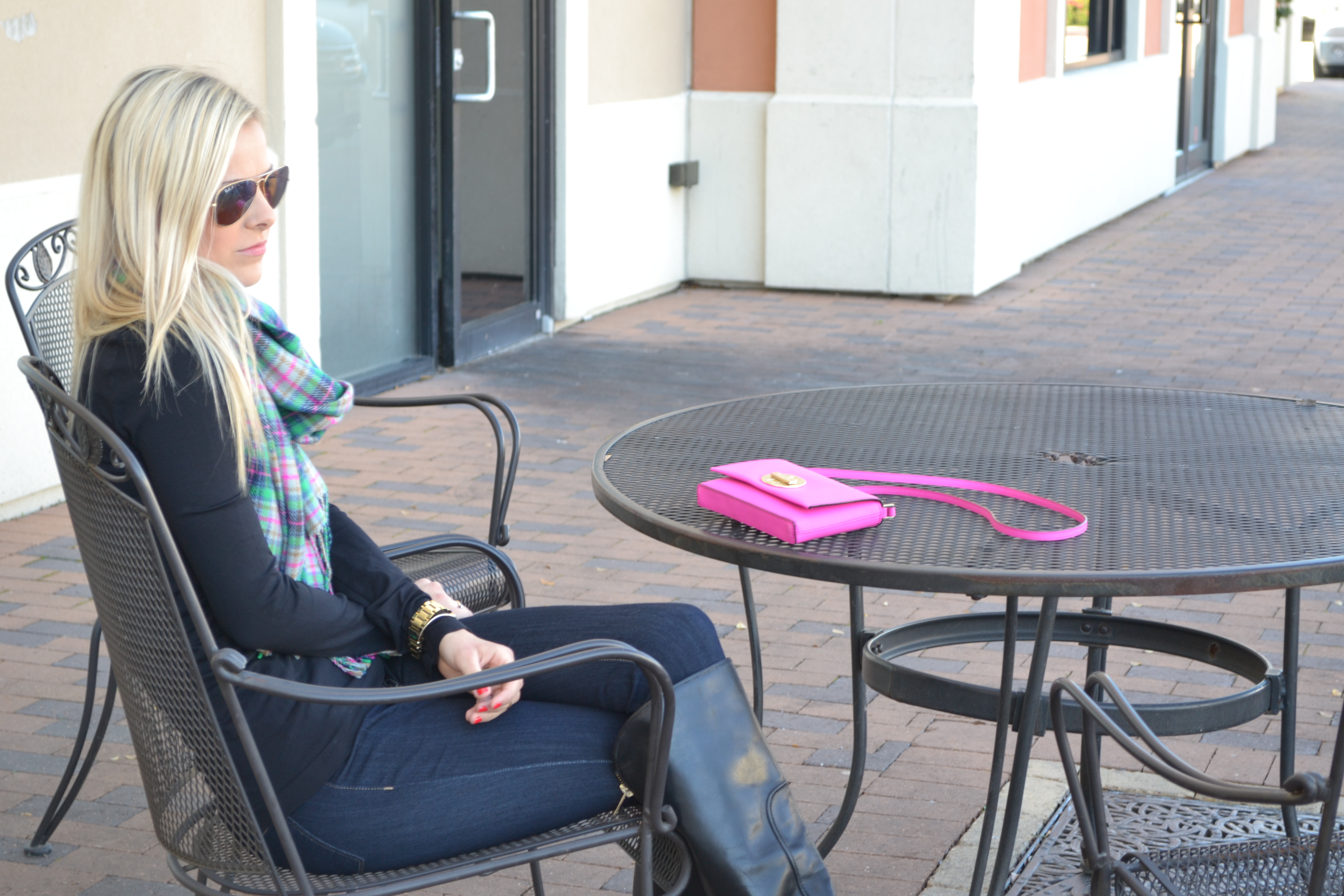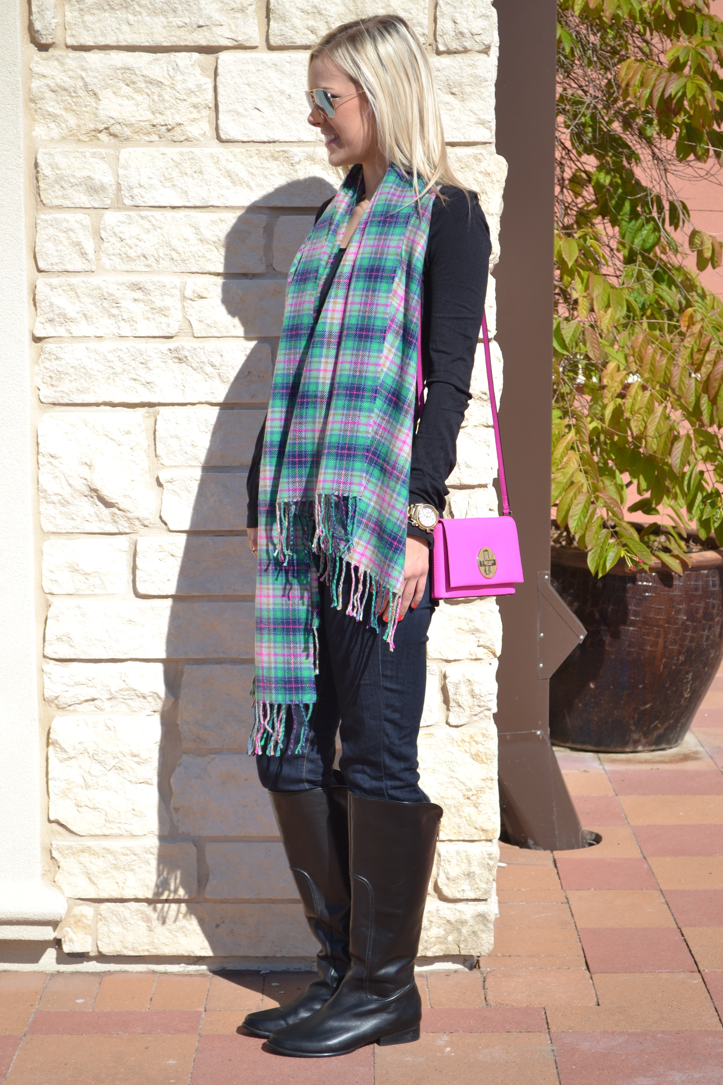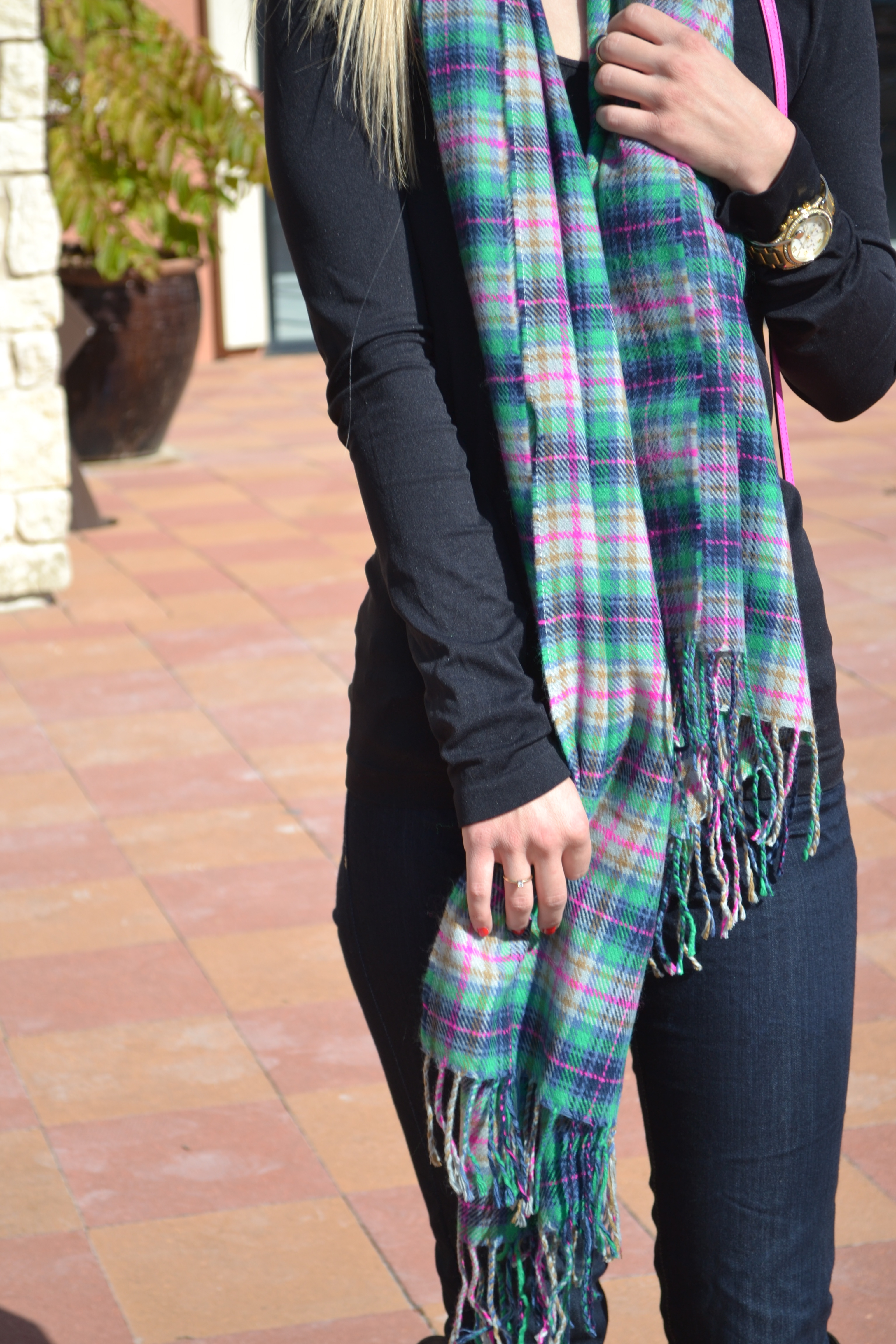 Top: Niki Biki | Jeans: Flying Money | Scarf: J Crew | Boots: Elaine Turner | Crossbody: Kate Spade | Watch: Michael Kors | Bracelet: Tory Burch | Sungasses: Rayban | Earings: Forever21 | Dainty Diamond Ring: Etsy (Similar) | Knuckle Ring: Forever21