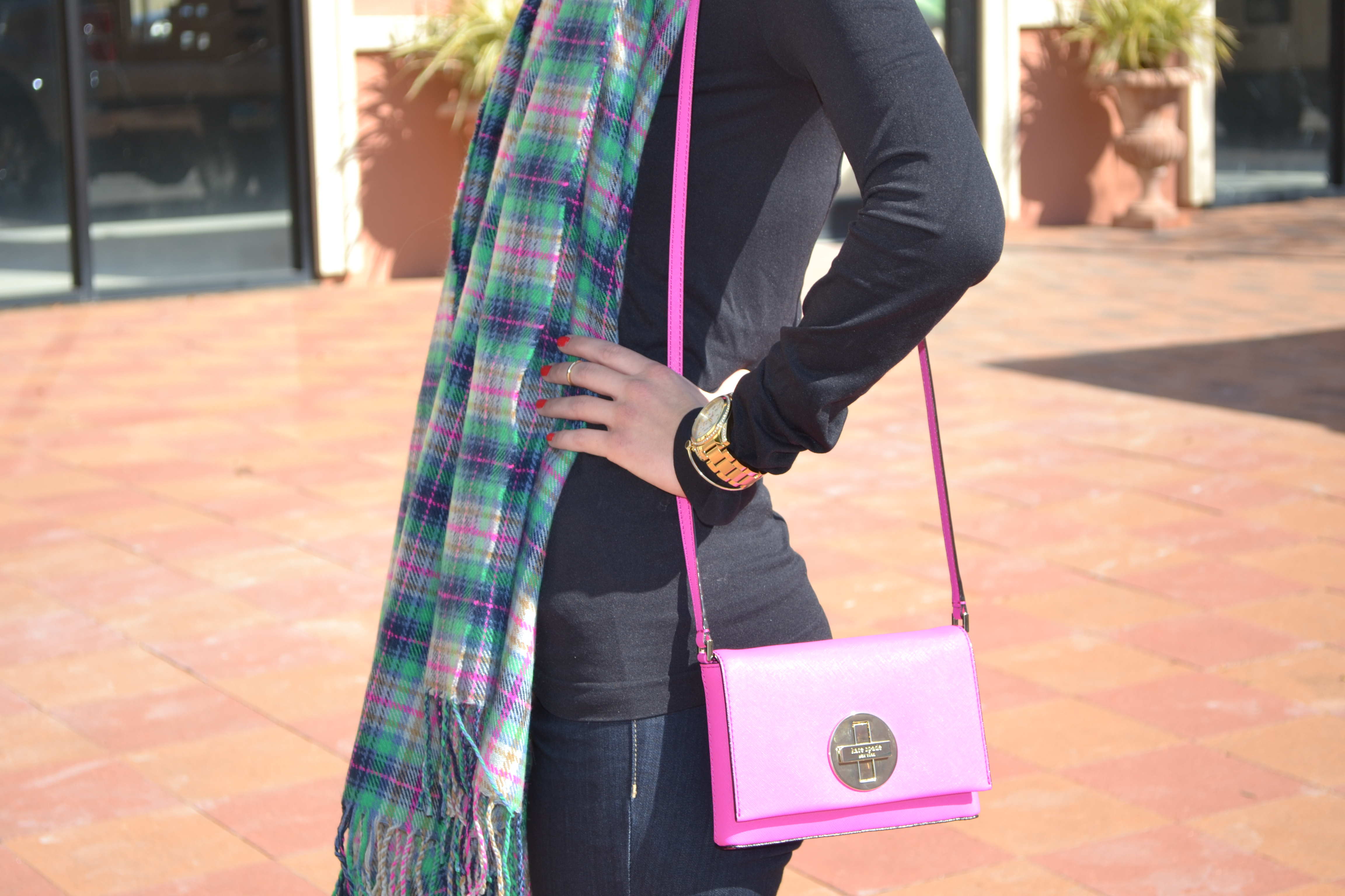 My sister and I went shopping today at our favorite shopping centre, inspiring this plaid and pink accented look. When I shop I typically go for the “casual cute” look, which allows me to walk around comfortably. This outfit also gave me the opportunity to try on different looks without creating a disaster in the fitting room, a typical scenario for myself!