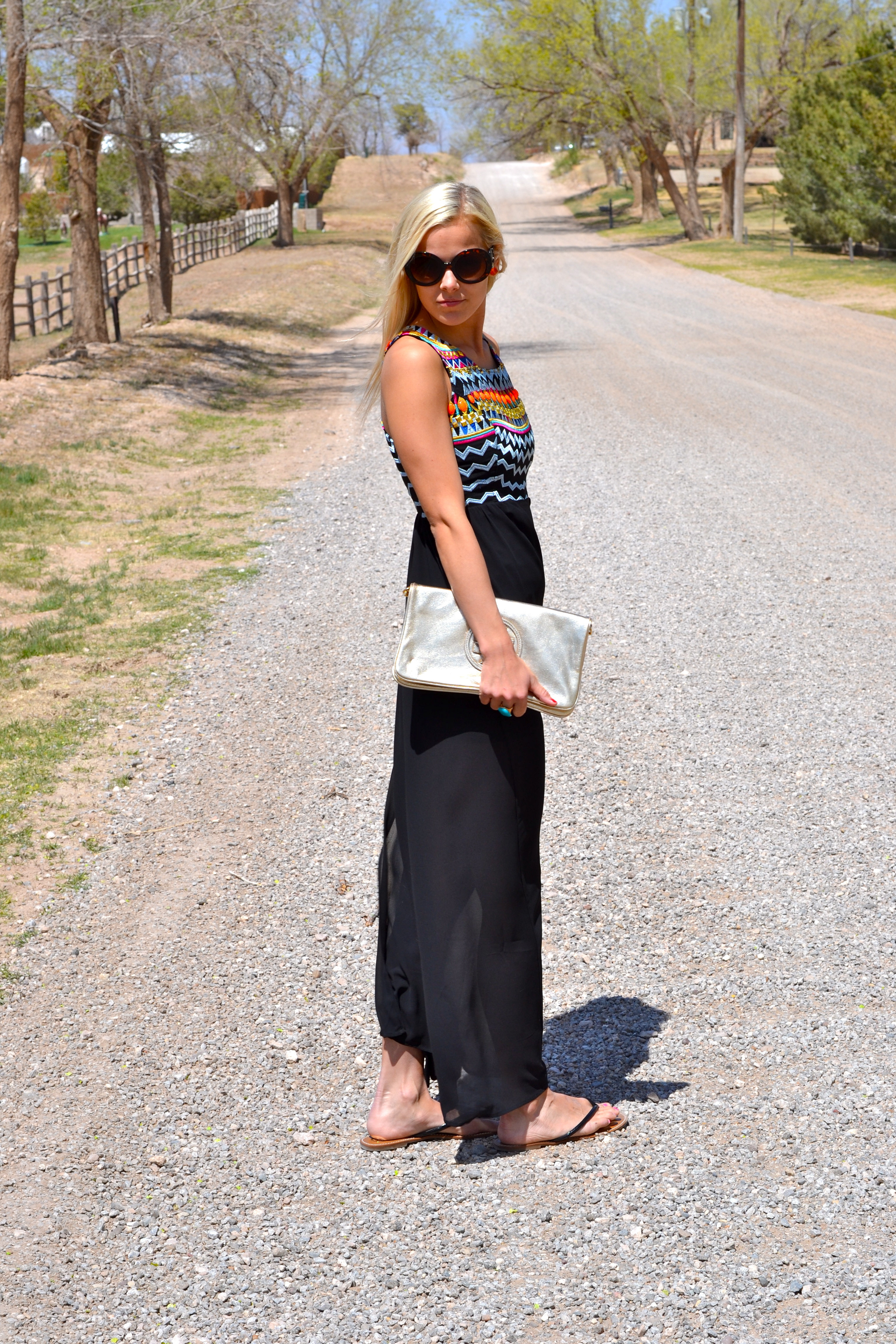 Dress: Flourish Boutique | Sandals: Tory Burch | Sunglasses: Prada | Clutch: Tory Burch | Bracelet: C Wonder | Statement Ring: Ellie’s Sparkles | Earrings: Kate Spade (on sale!) | Lip Gloss: Bobbi Brown Buff | Nail Color: Butter London Pillar Box Red