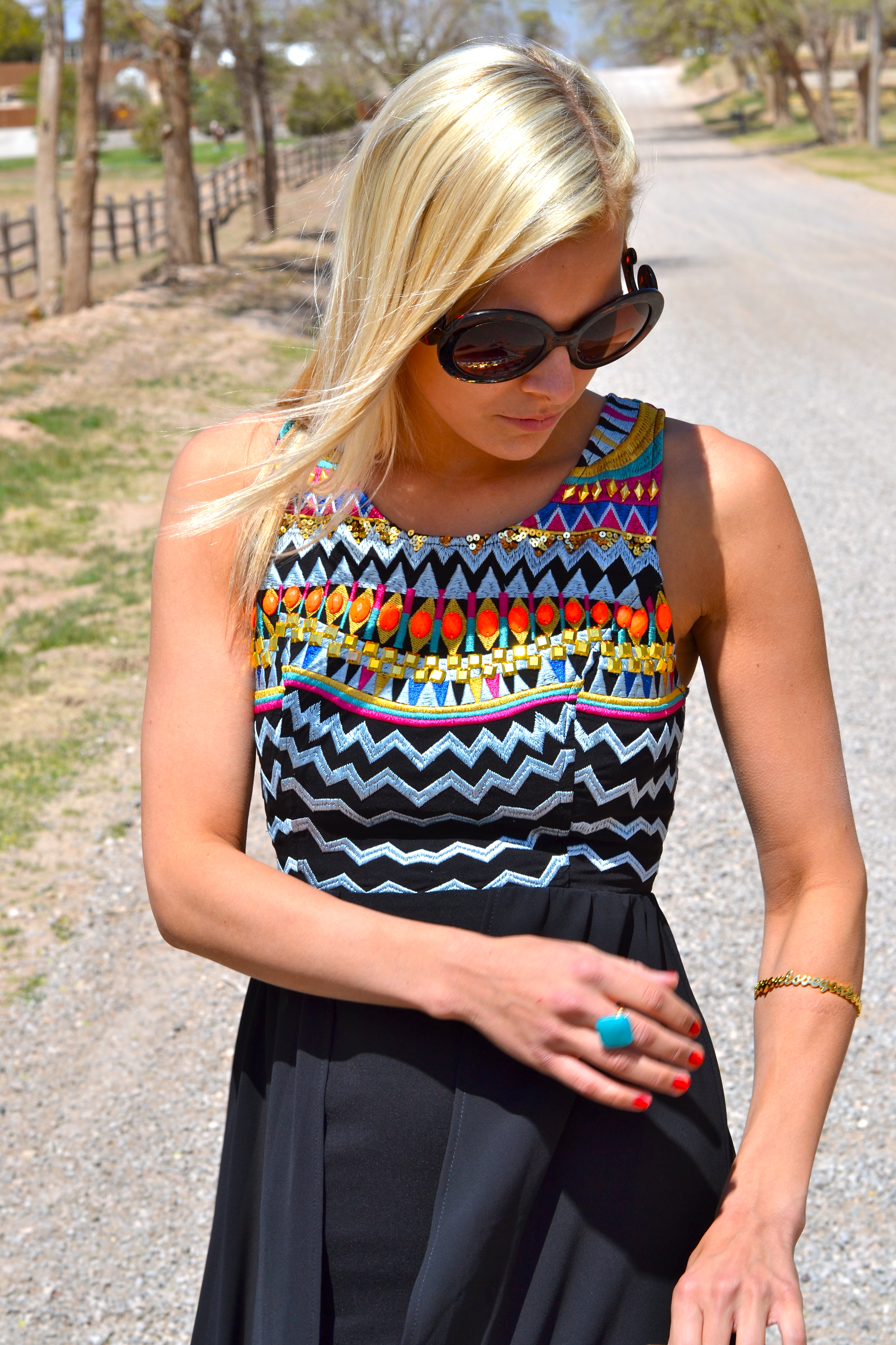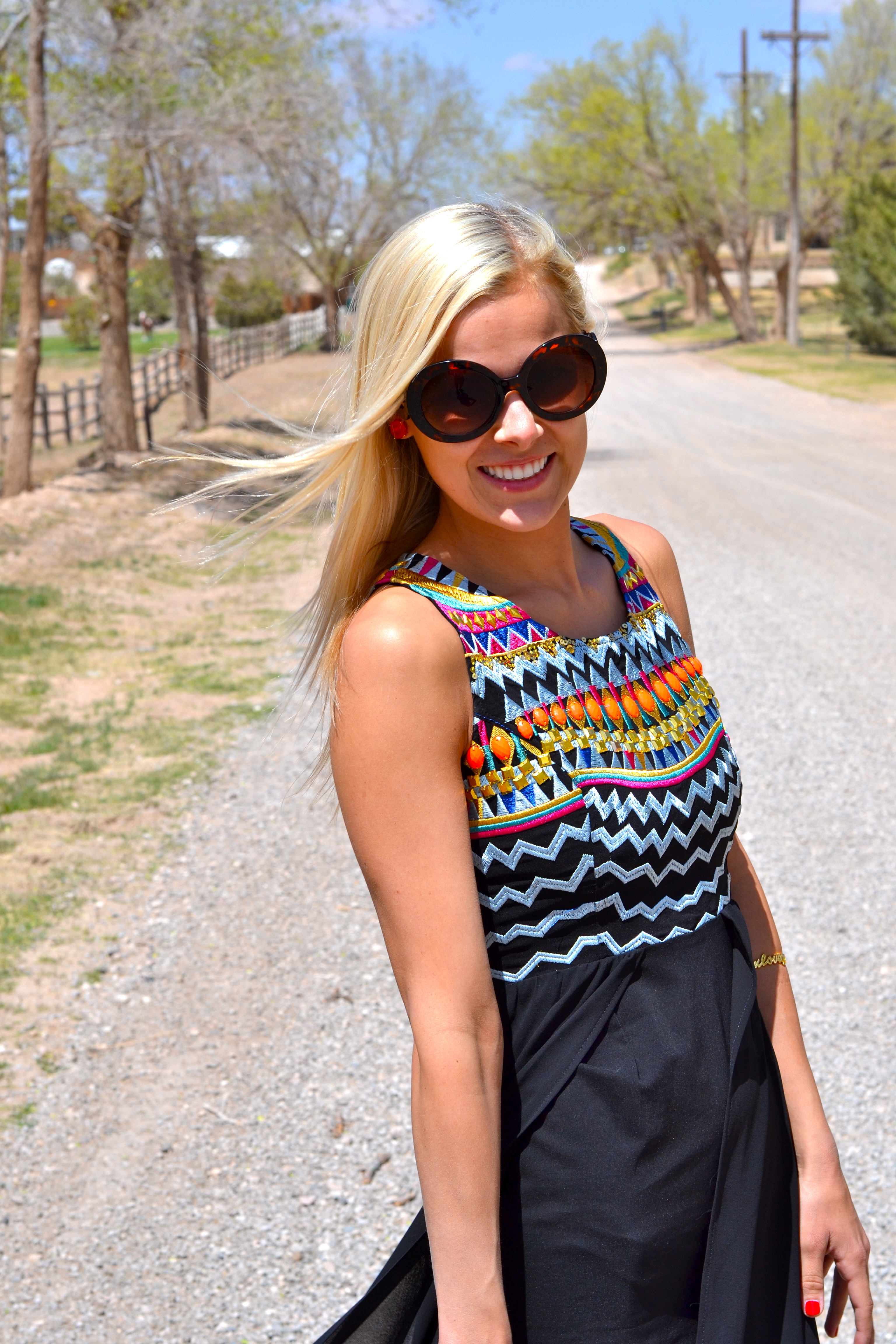 This piece from Flourish Boutique, took the classic black dress to a whole new level. The sheer open skirt on this dress adds a flirty and dressy touch. My favorite part of this dress is the neon accents on top, which make it perfect for summer!