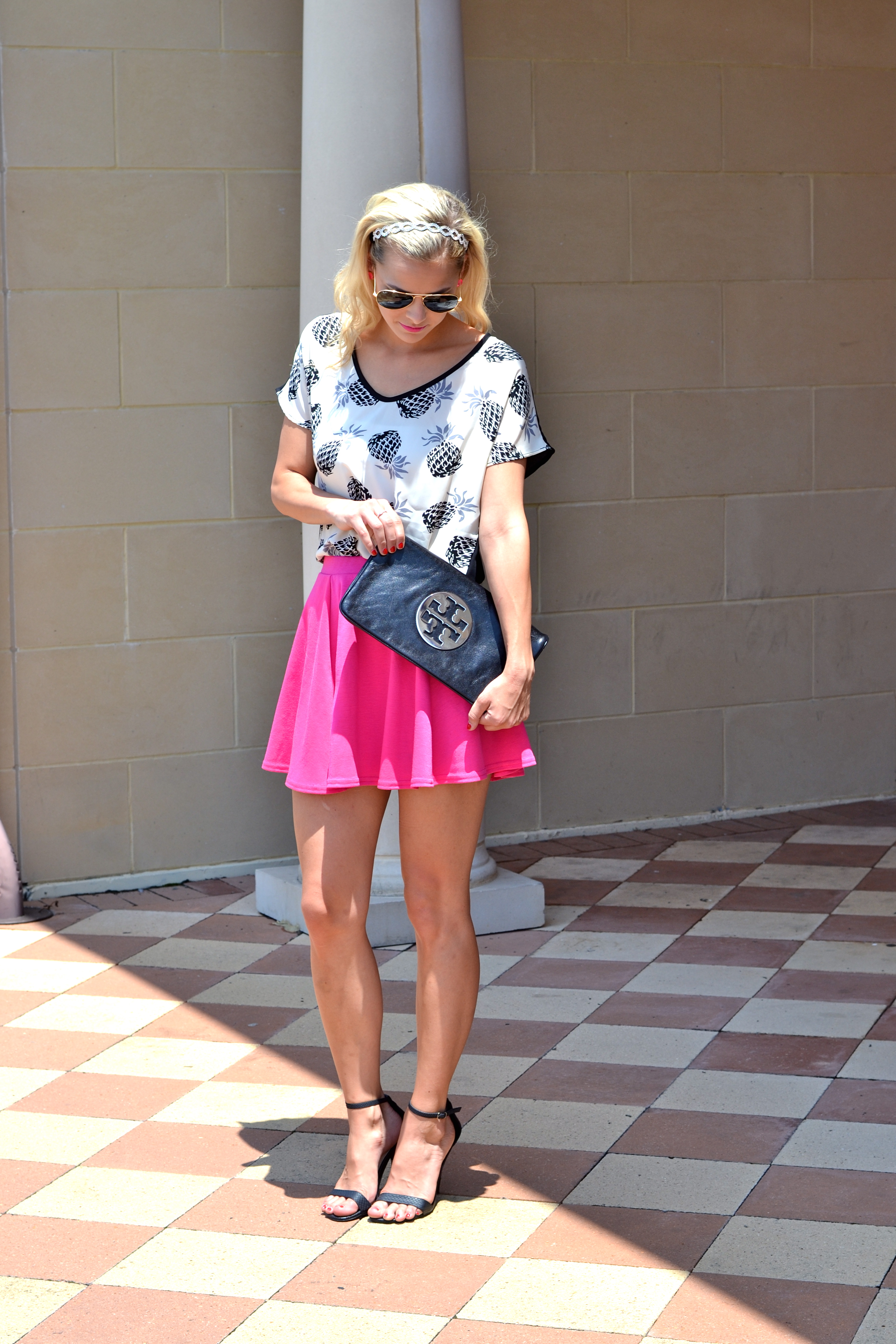 Top: The Crystal Feather Boutique | Skirt: ASOS | Heels: Michael Antonio | Bag: Tory Burch | Sunglasses: Ray-Ban | Headband: Jolie | Earrings: Kate Spade | Nail Polish: Butter London Ladybird | Lip Stick: NARS Roman Holiday |