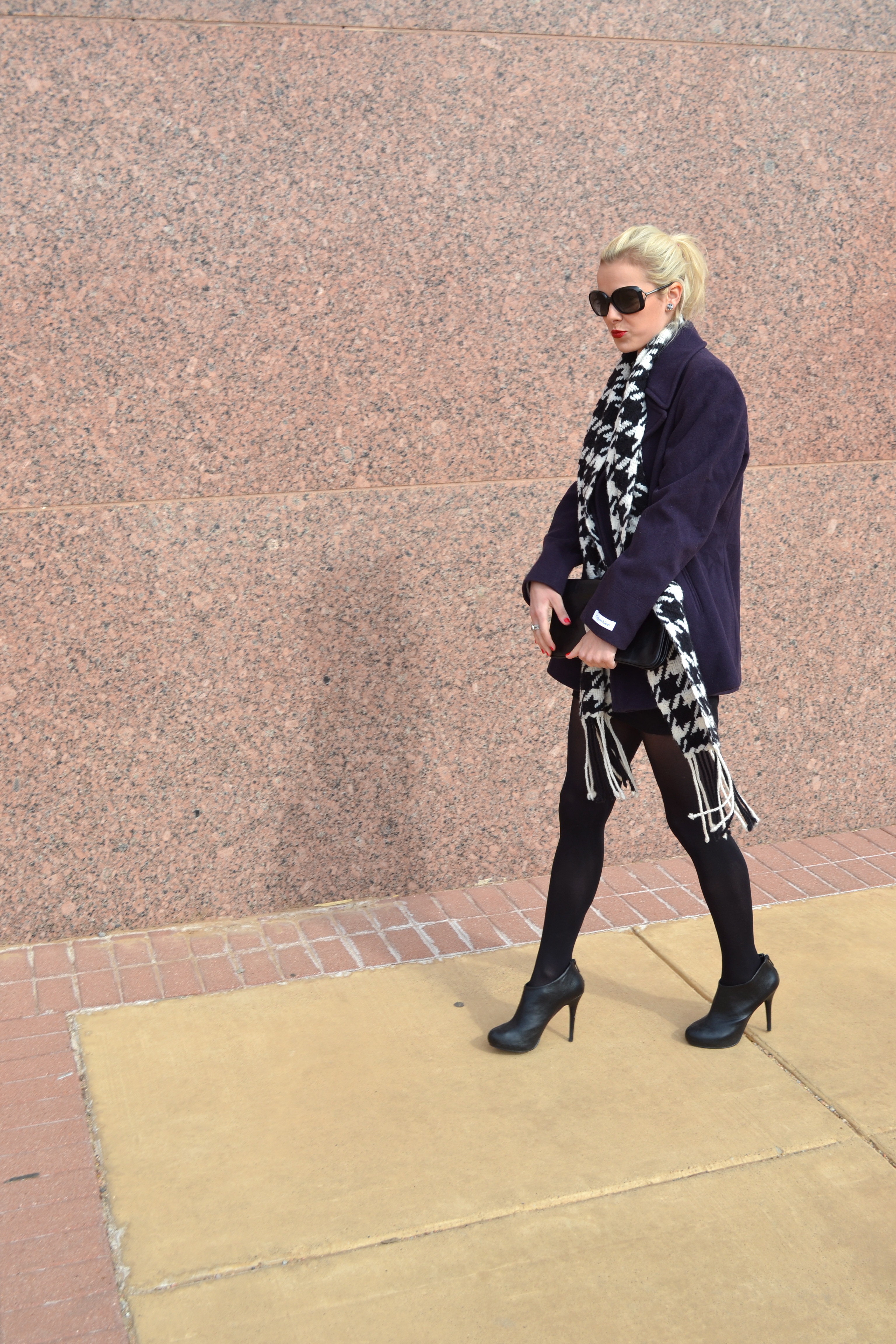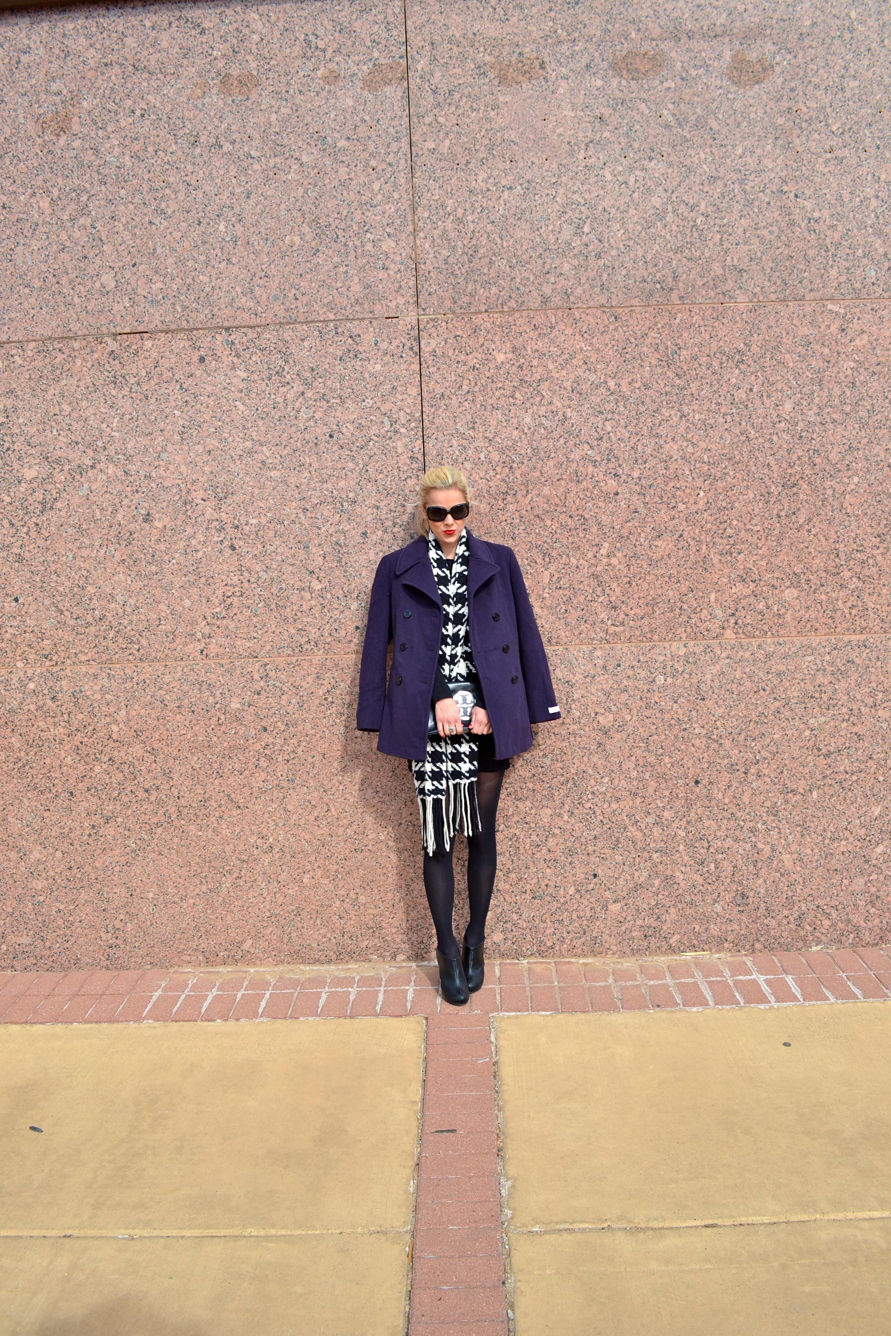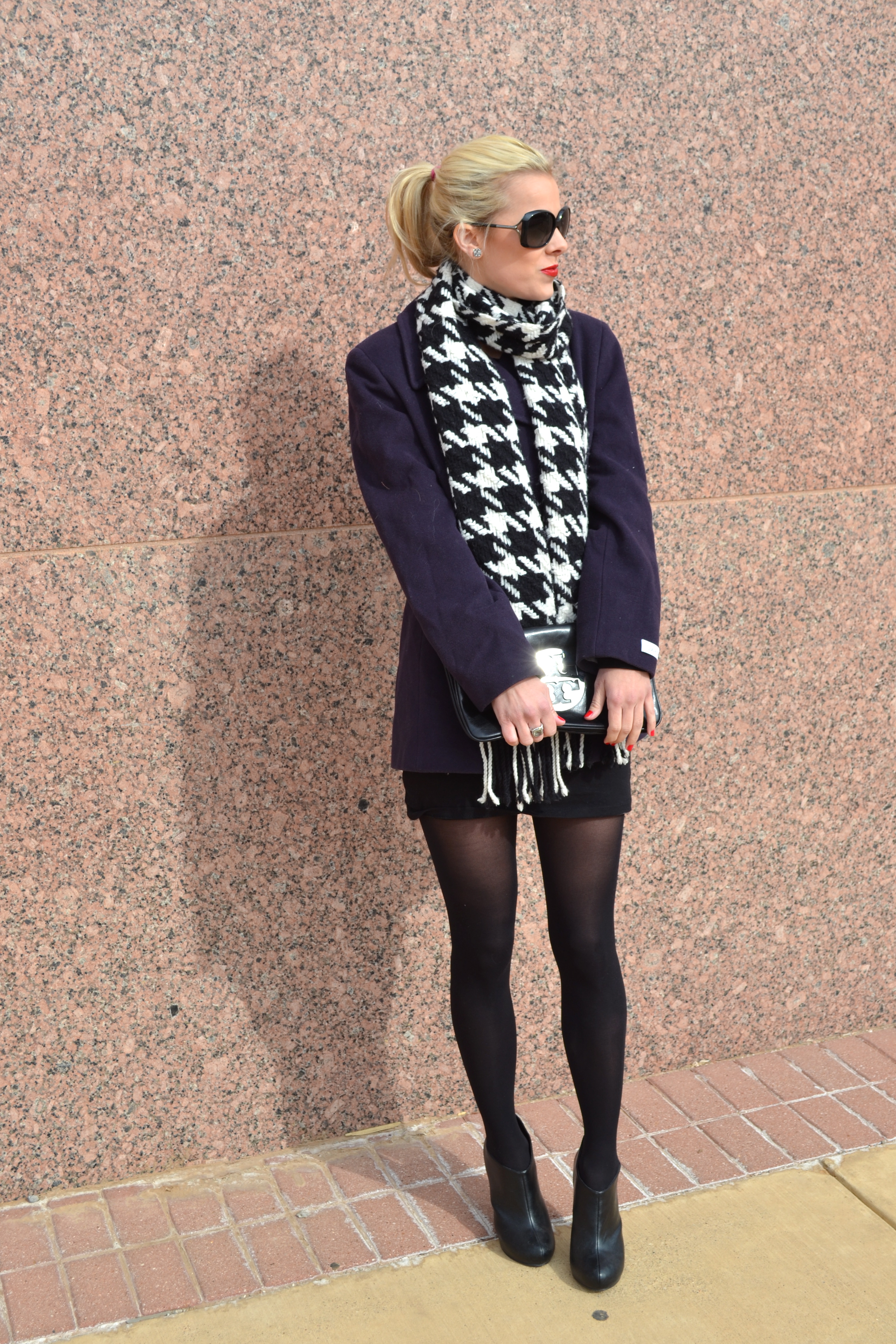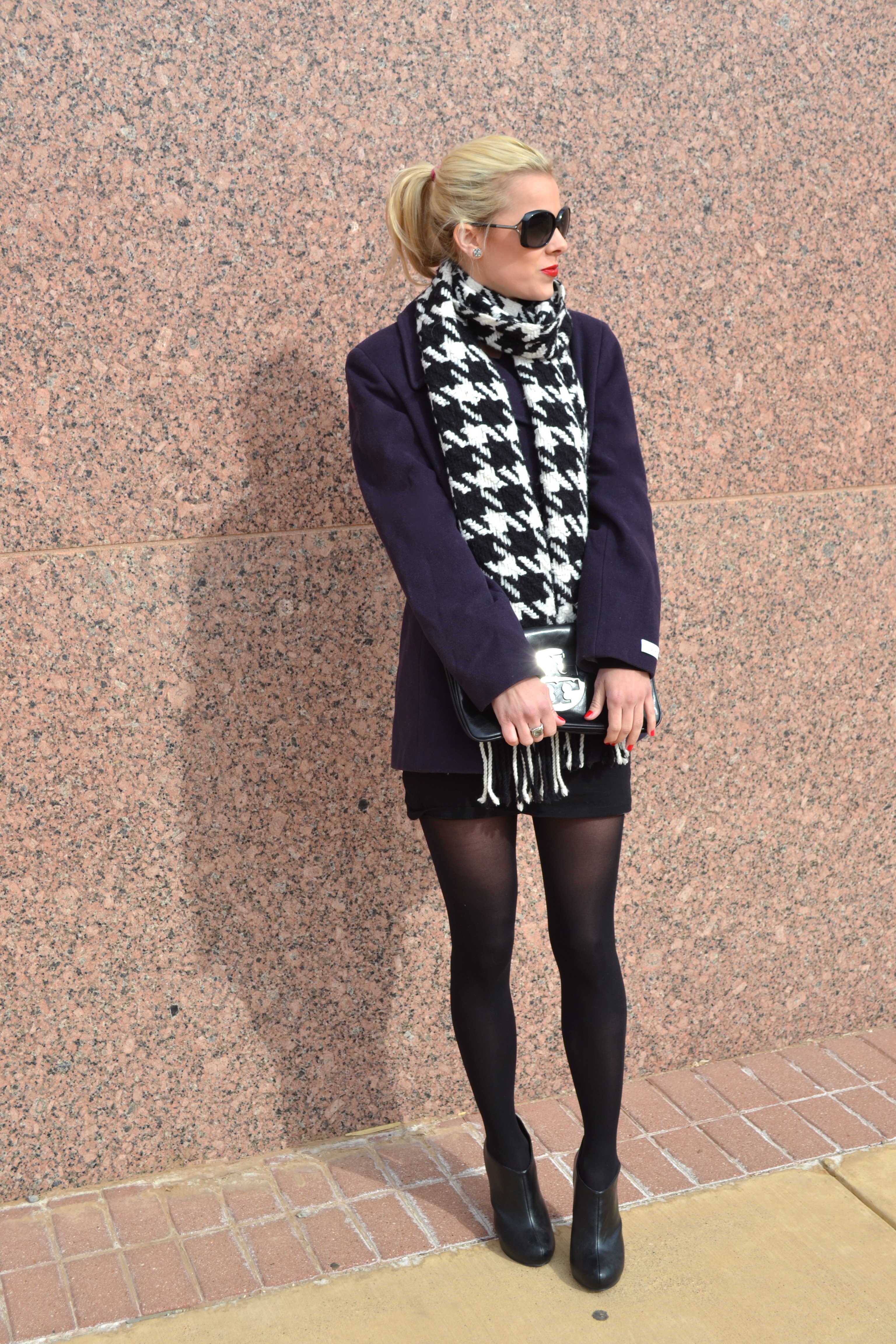 My favorite thing about the winter time is scarfs, and this Kate Spade one is everything! The warm wool texture and the classic black and white, Houndstooth print, makes this scarf great for anything. I dressed this outfit up with some tights and booties and added my favorite peacoat from Calvin Klein. You could even make this outfit more dressy by adding a pair of printed tights instead of solid black like I did. I hope you have a great week!
