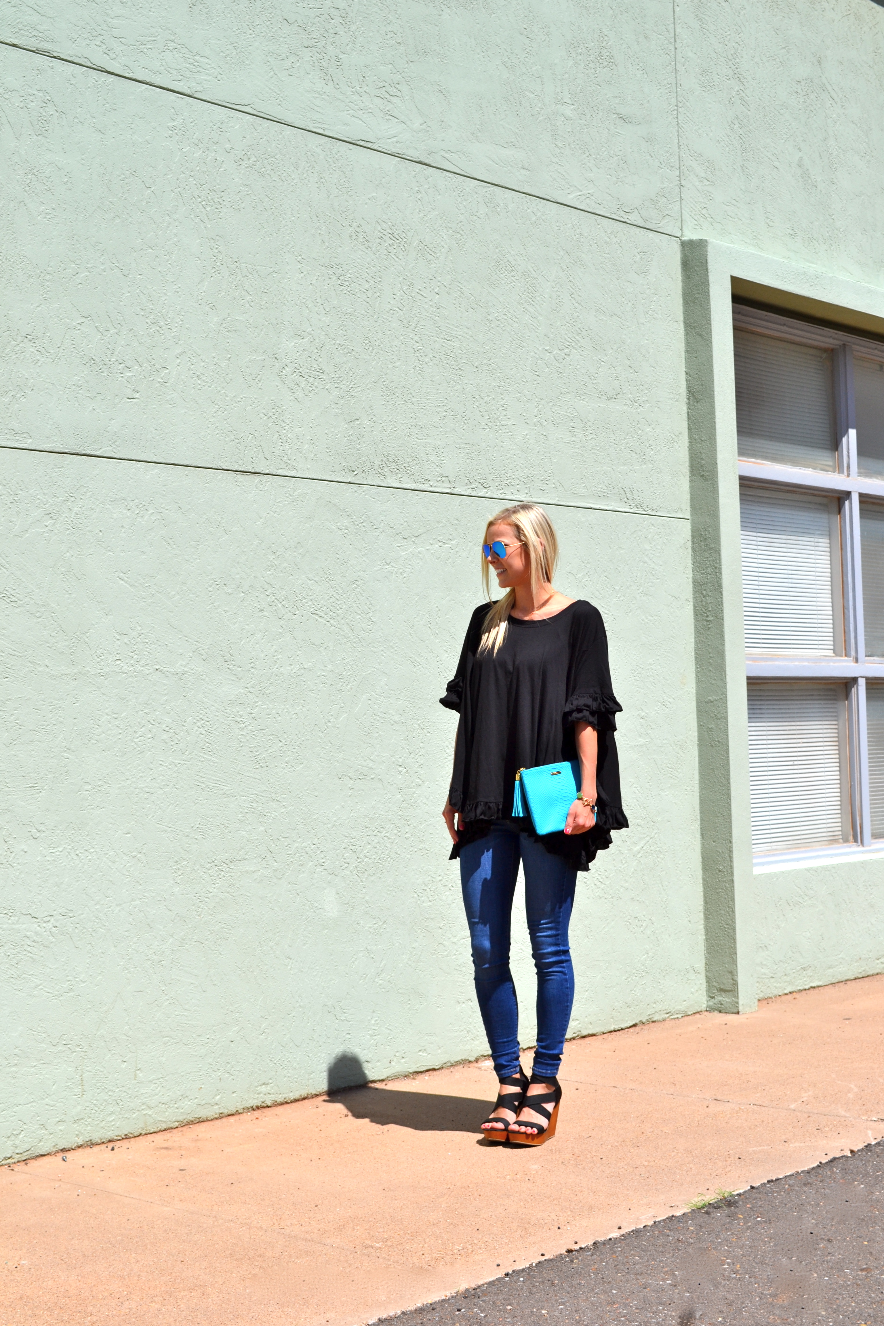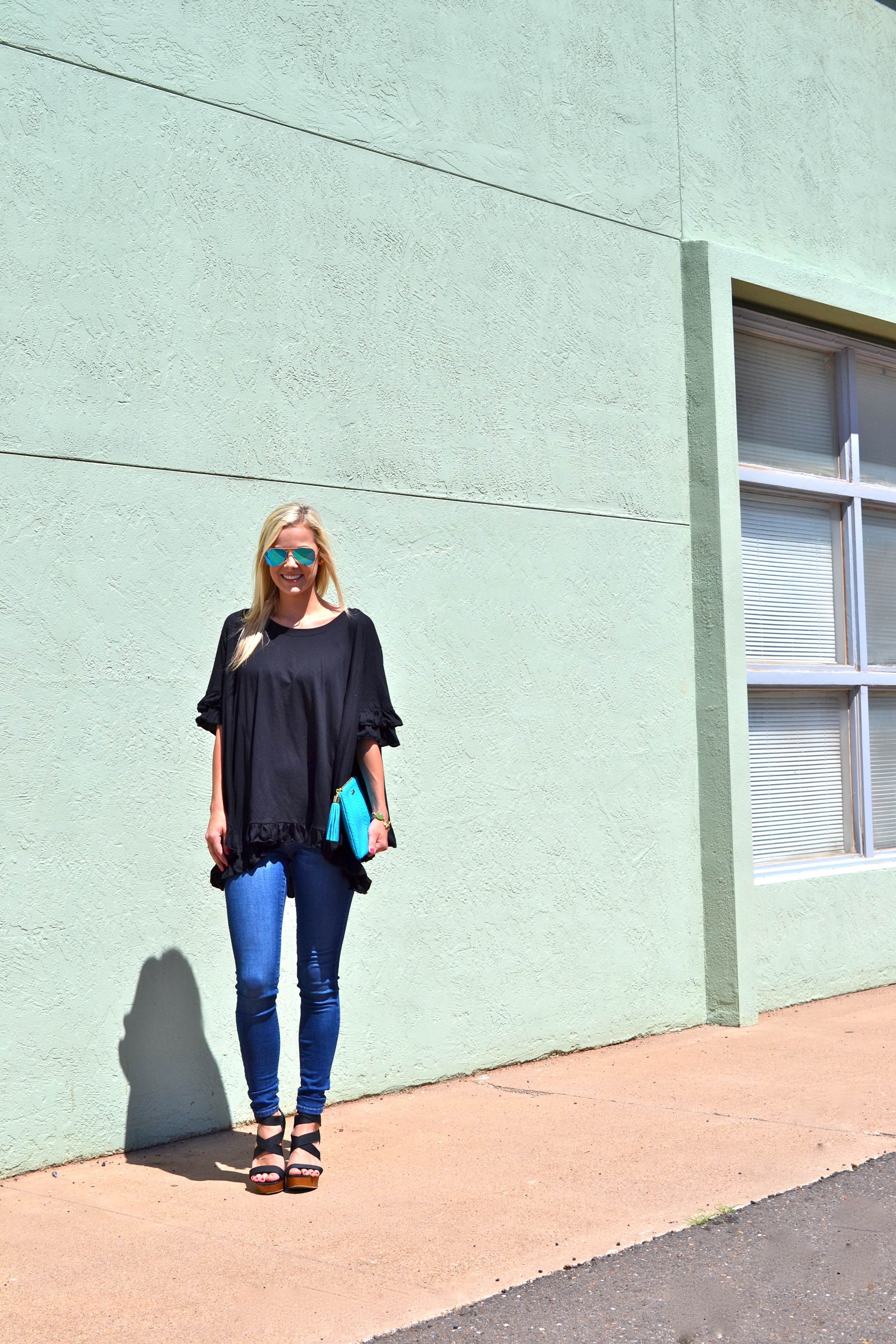 I have had ruffles in my closet since before I can even remember (seriously), and if they have stuck with me this long… they have to be good, right?! You can never go wrong with classic black and this top from Deja Vu is perfect for Saturday morning errands. Here is a little secret about me, I hate jeans. I hate jeans. I hate jeans. But, I love this pair (rare moment) from Nordstrom Rack! The Rack is without a doubt my favorite shopping destination. You can find anything and everything you need in the place!