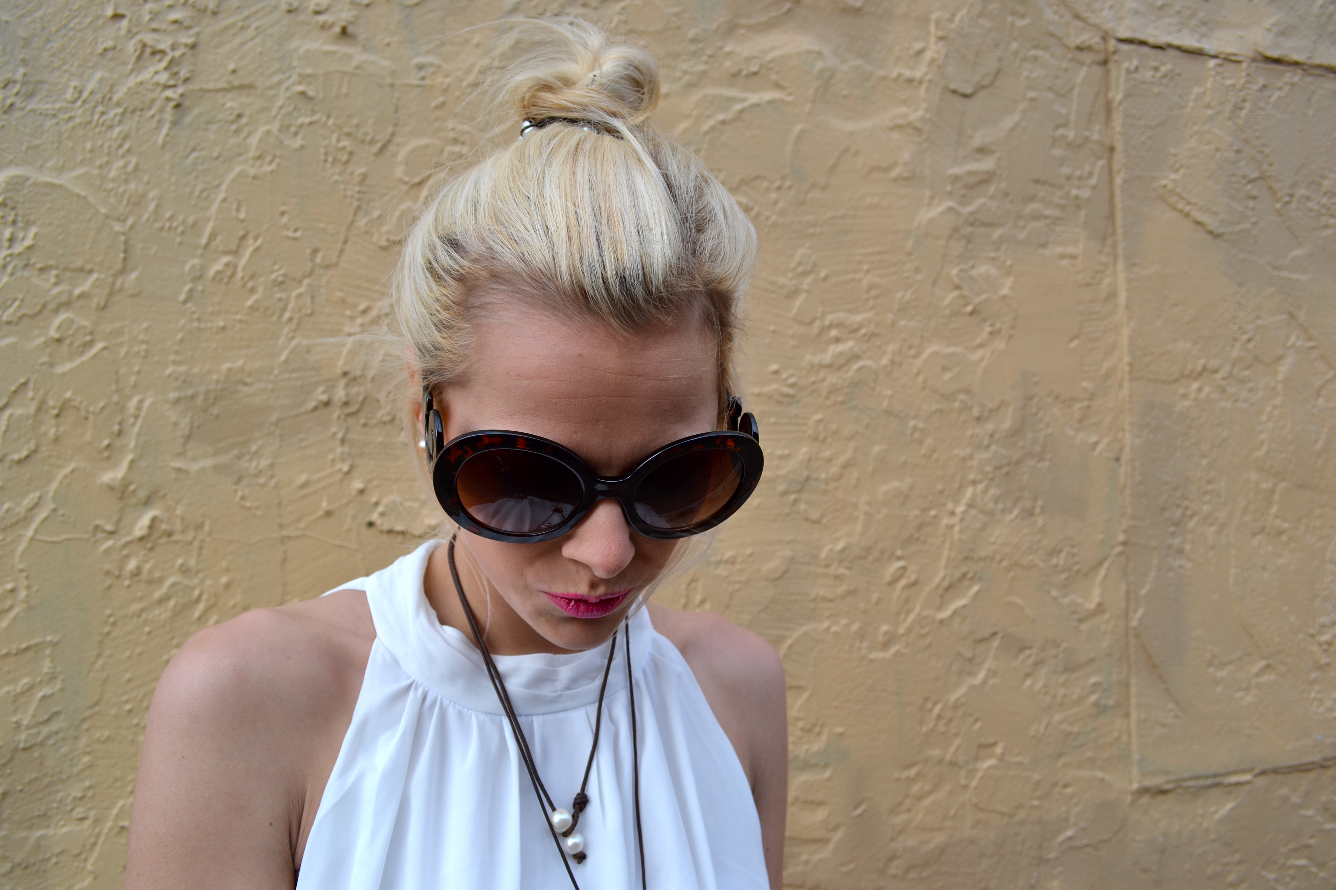 Dress: UrbanOg | All jewelry: Seaside Pearls | Sunglasses: Prada | Lipstick: Nars Goodbye Emmanuelle | Nail Polish: Butter London Slapper